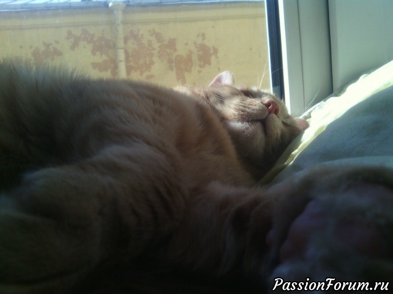 А вот и белые пушистые штаны! Лапы стрижены до нормального кошачьего состояния. В белой шерсти было всё вокруг и мой рыжий кот и я)))