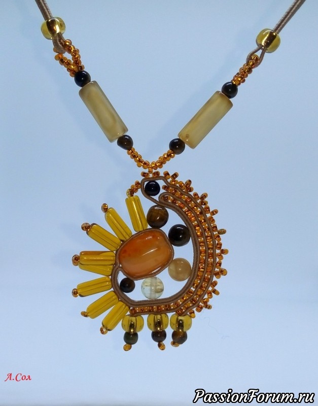 В сутажиках бусины из натуральных камней, чешский бисер и стеклянные бусины.