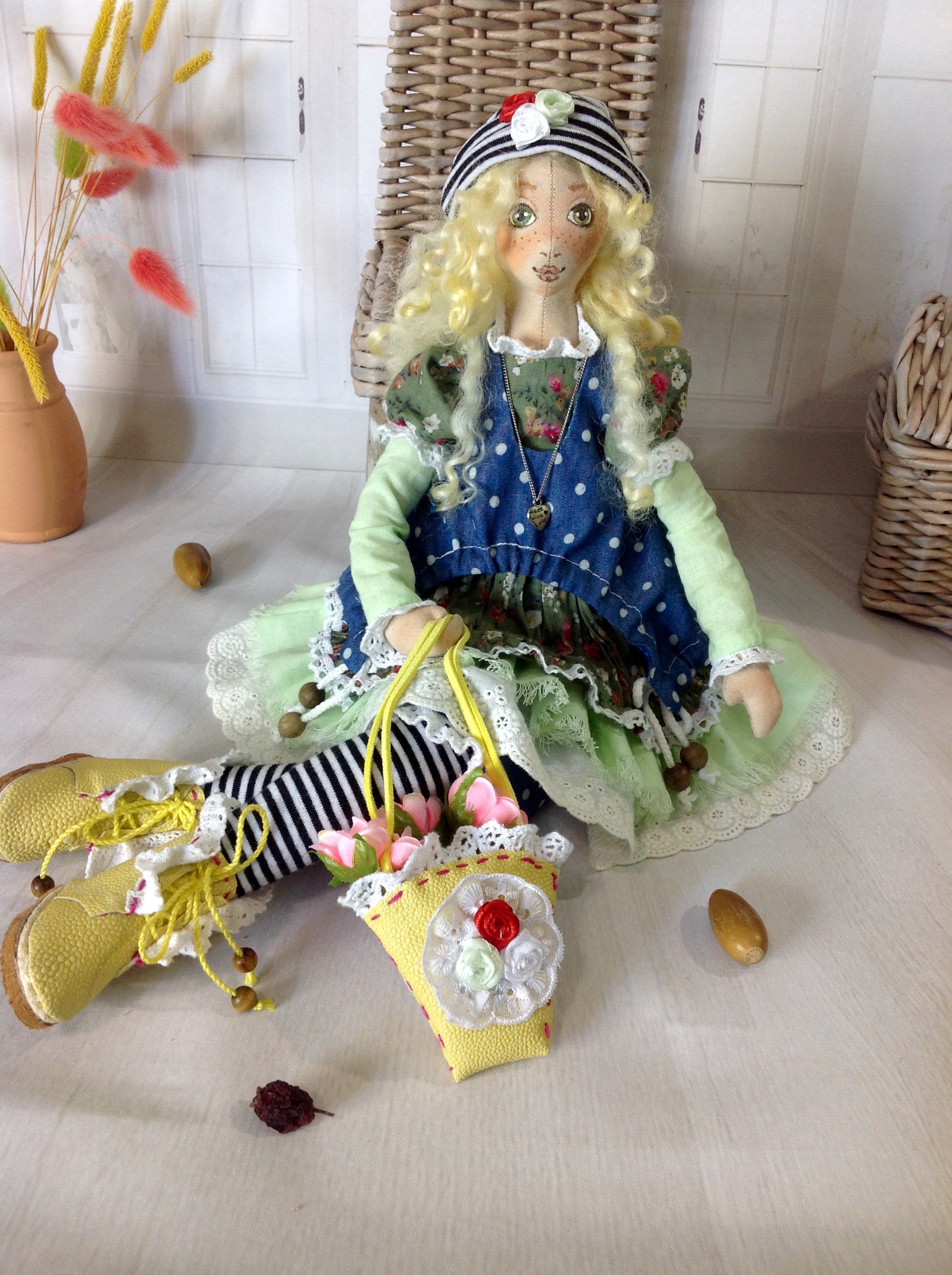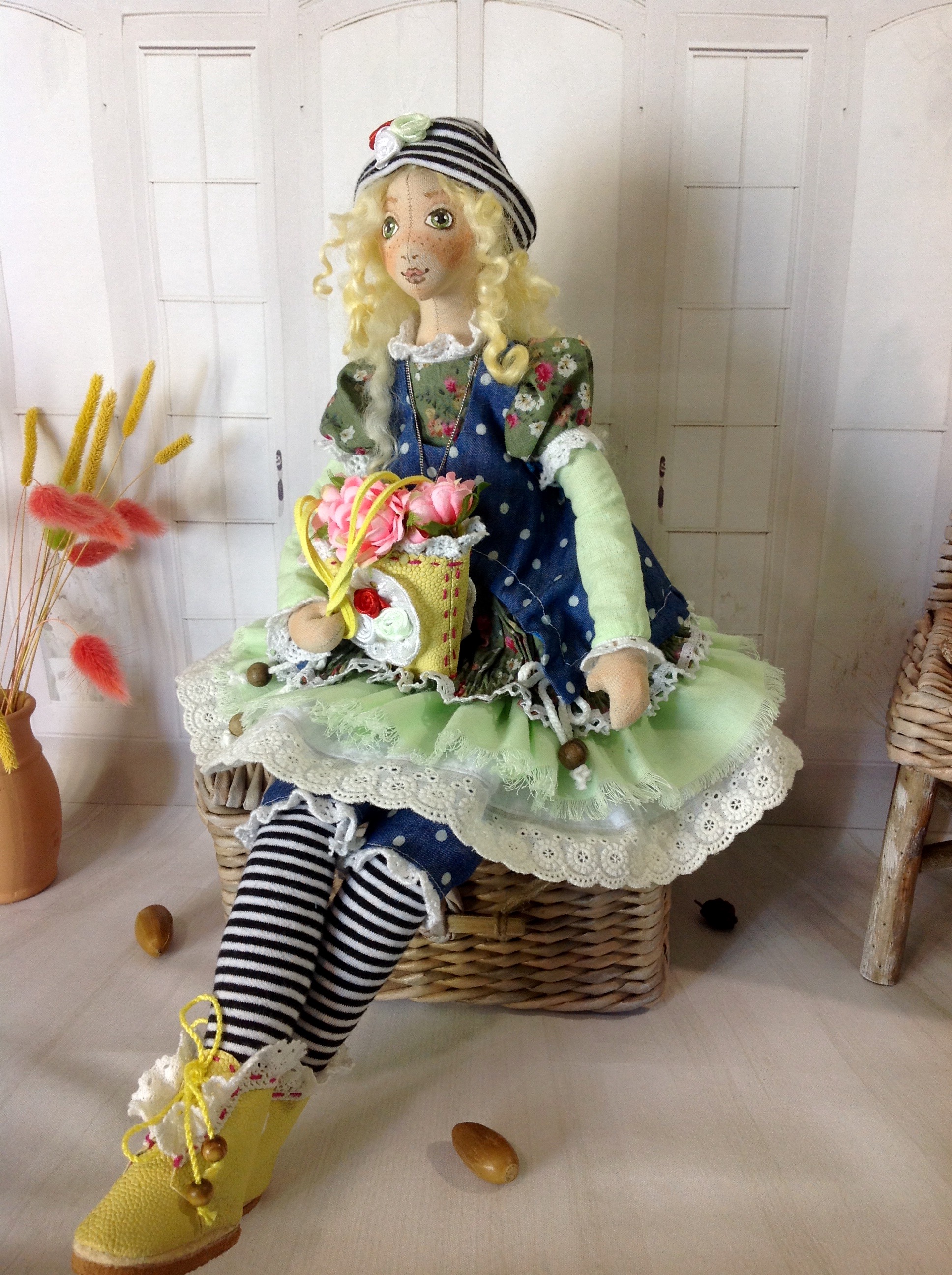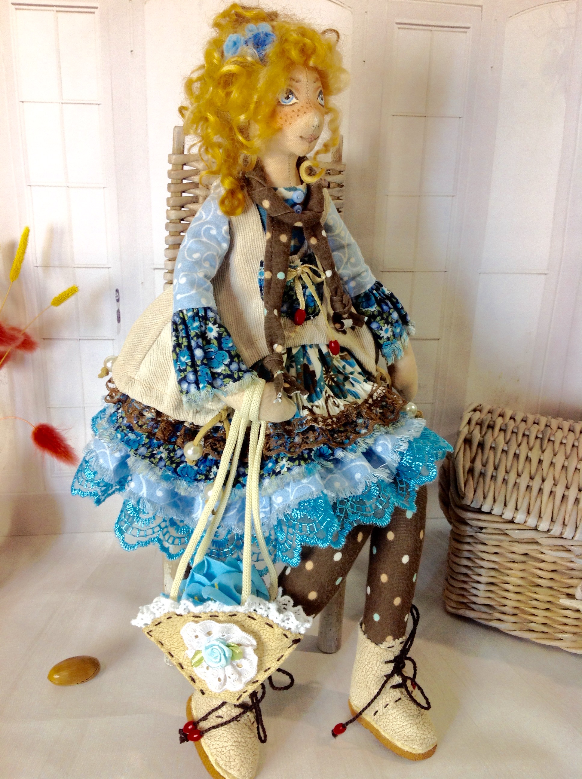 - Куколки текстильные, в ручках проволочный каркас, волосы натуральные - овечьи кудри и локоны козочки, обувь ручного изготовления. Рост куколок 47-48 см. Куколки самостоятельно не стоят, но очень красиво сидят.