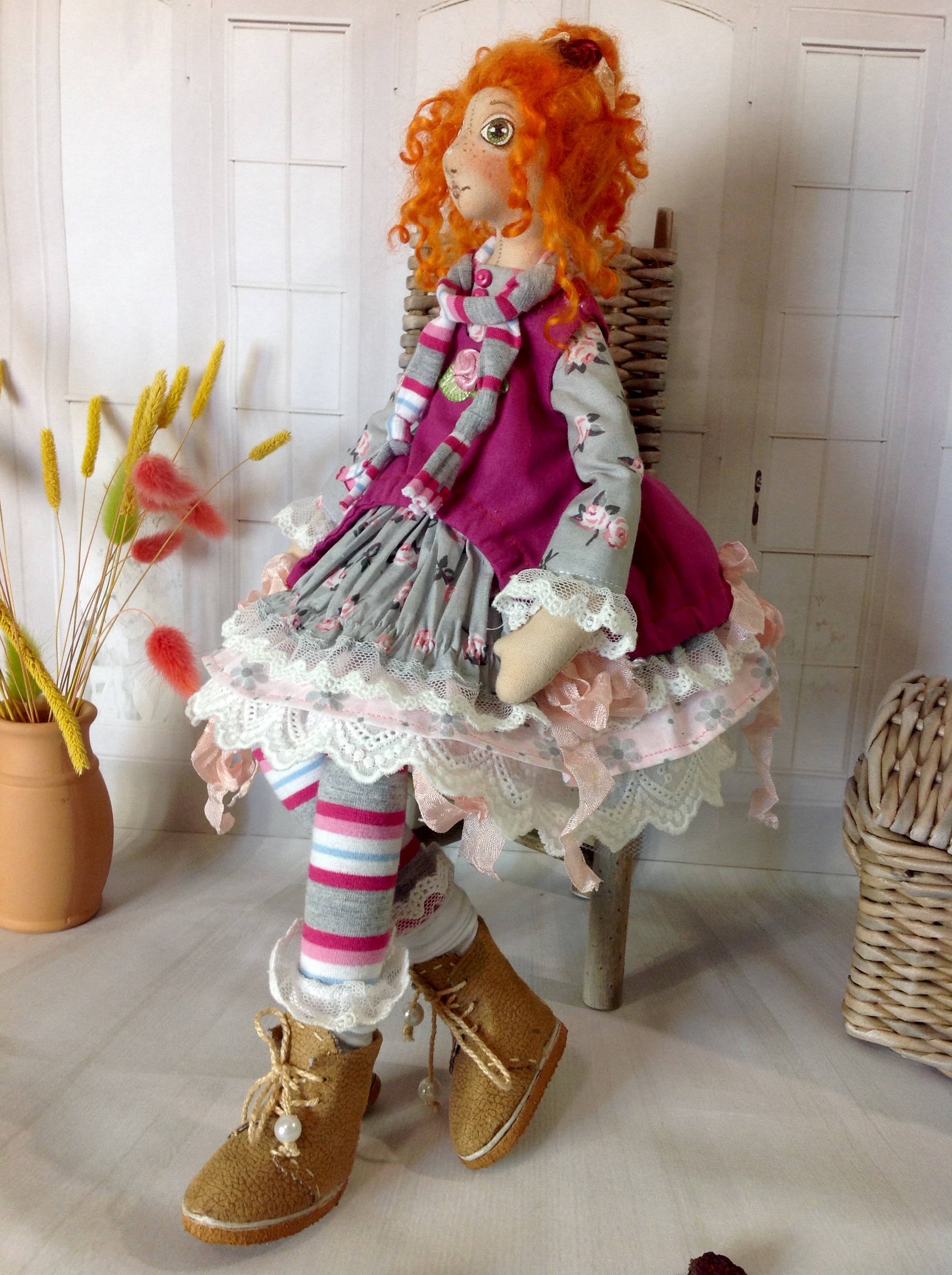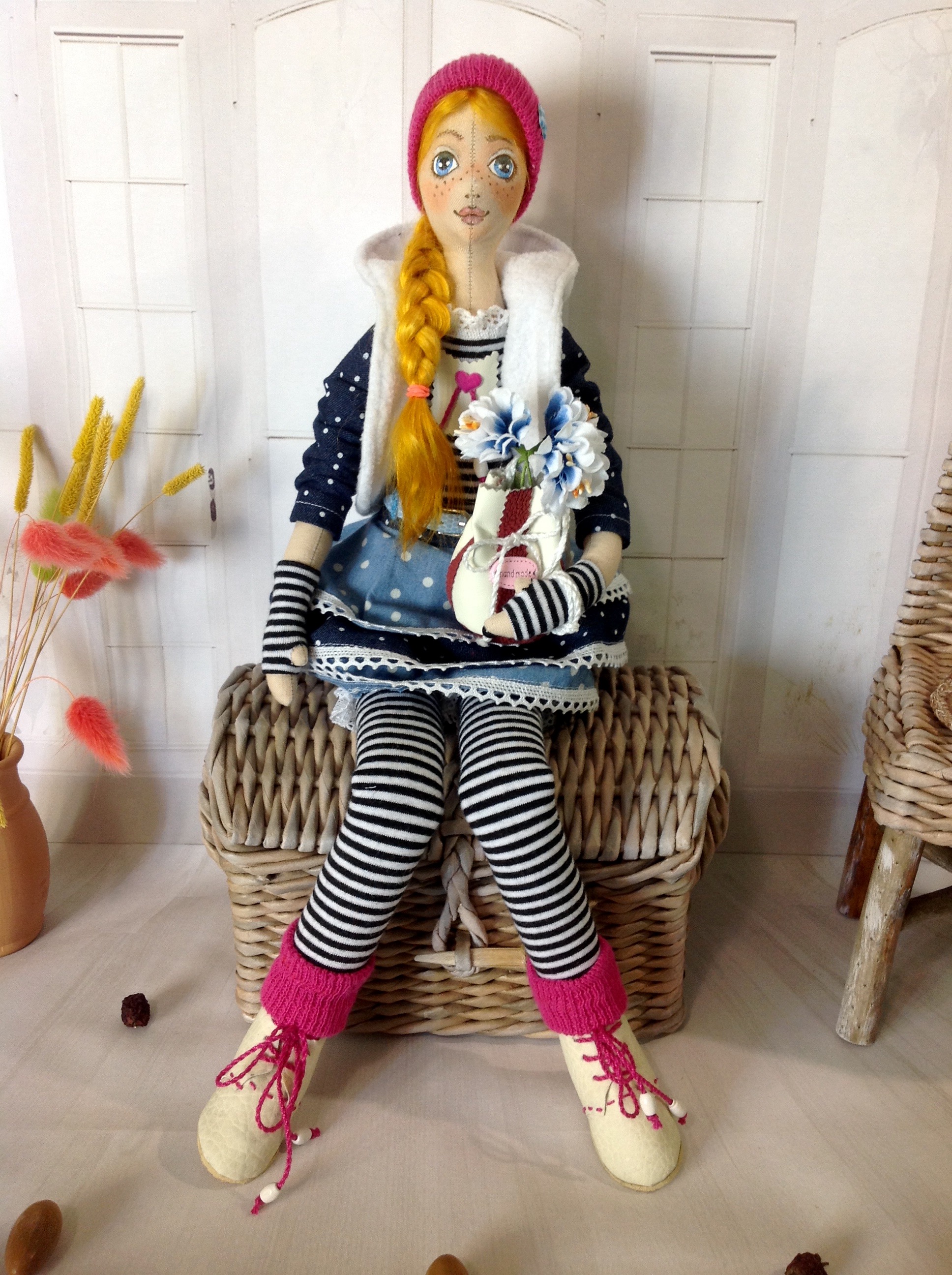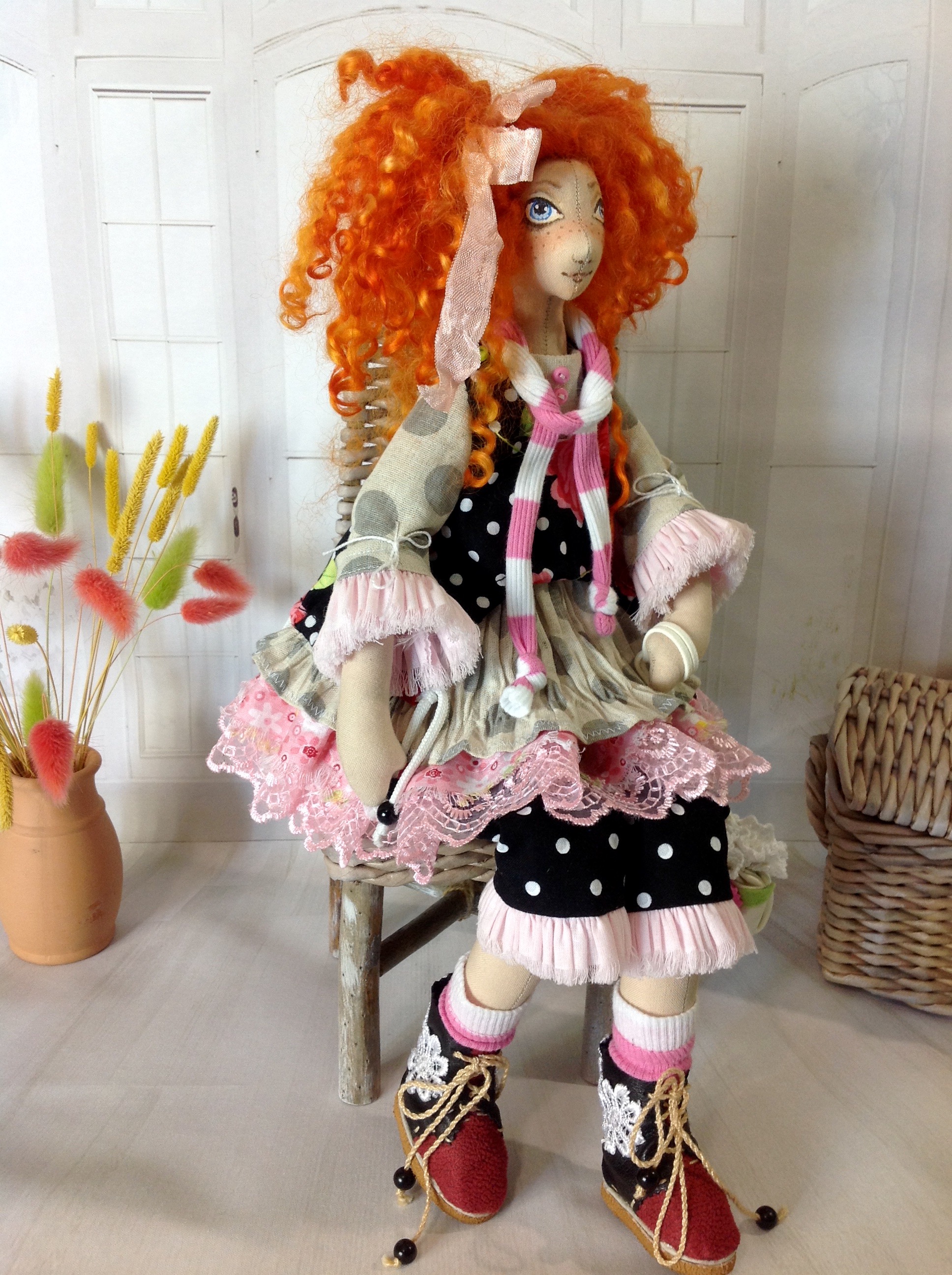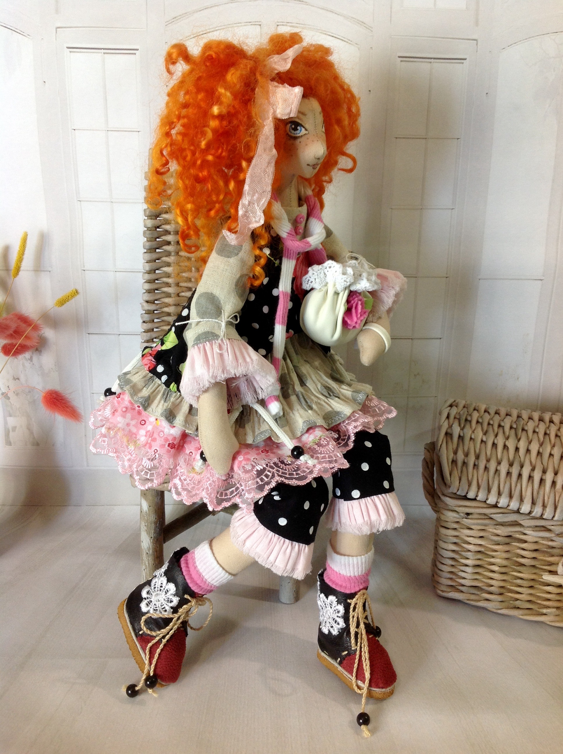 - Куколки текстильные, в ручках проволочный каркас, волосы натуральные - овечьи кудри и локоны козочки, обувь ручного изготовления. Рост куколок 47-48 см. Куколки самостоятельно не стоят, но очень красиво сидят.