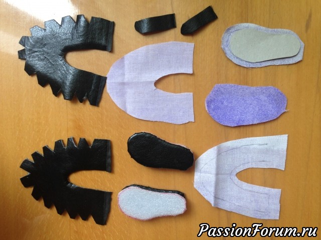 Приклеила кож.зам к пластиковой подошве, а из материала приклеила к подошве из картона.