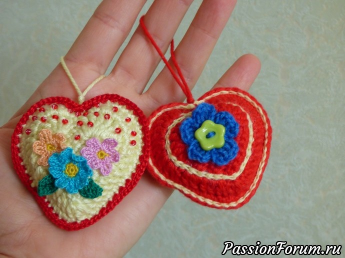 Давно я не выставляла здесь своих работ, но это не значит, что я не творила ))) Начну с мелочей ) Вязаные сердечки.