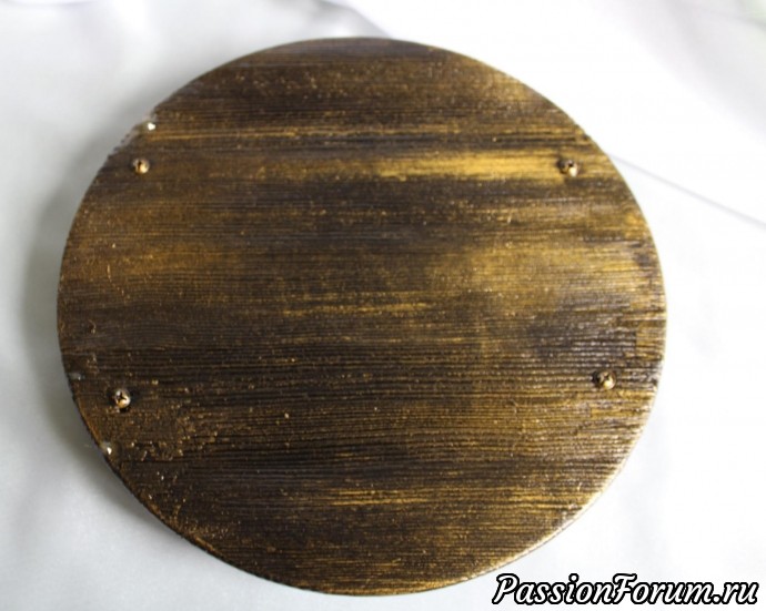.Брашинг, золочение, зеркальная поверхность . Залит эпоксидным лаком, не боится высокой температуры. Диаметр 25см.