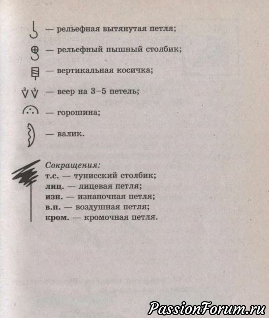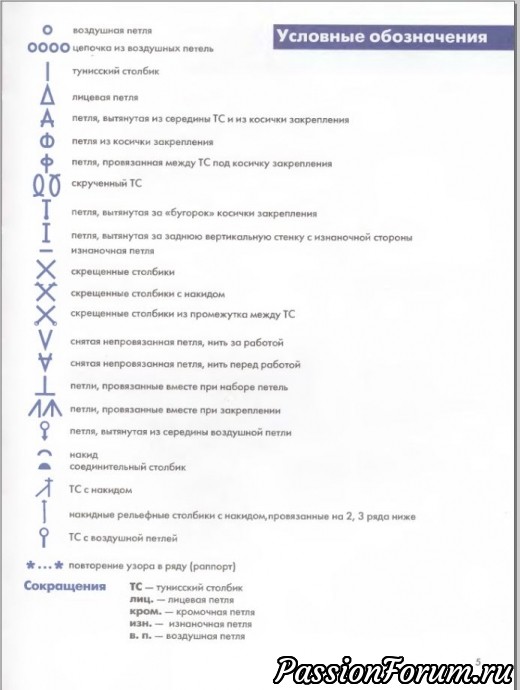 Решила побыстрее выложить обозначения. Книги большие пока обрабатываю. Предлагаю ещё очень симпатичный шарфик, связанный тунисским крючком.