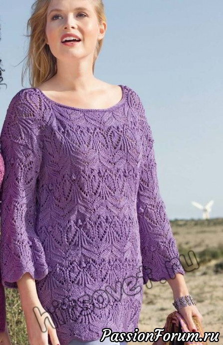 Модный ажурный джемпер с красивым узором, связанный из хлопка на лето для женщин с бесплатным описанием и схемой вязания.