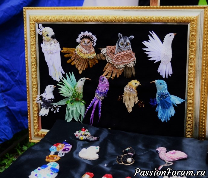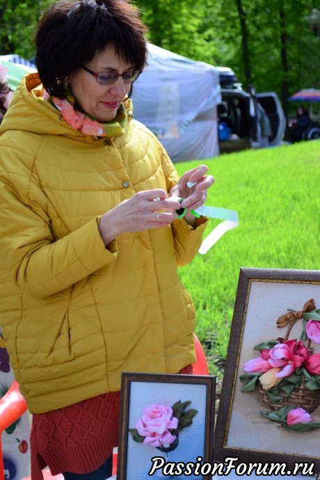 Много было картин вышитых лентами. Я тут стояла очень долго - от такой красоты сразу не уйдешь))) Наташа (Natali_lion) уж точно знает как это затягивает!