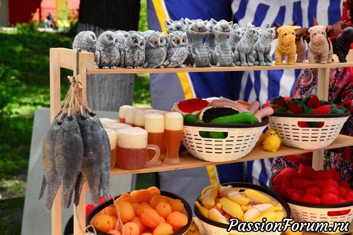 Хозяйка палатки (видимо опытные участники))))) раскладывает фигурное мыло...