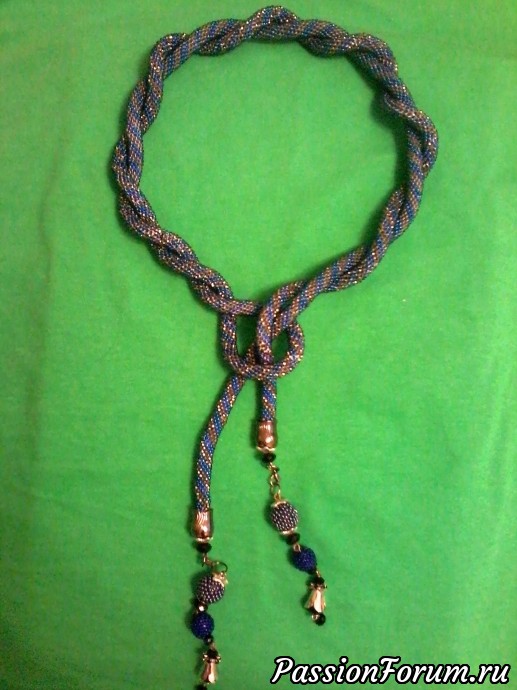 Мой самый первый лариат , на котором я училась вязать жгуты. Ох и намучилась я с ним , сколько раз пришлось распустить , но всё-таки ,что-то вот получилось))) назвала я его "КИШИКИТОКА" , вроде бы замудрённое название , но это очень просто -на японском ИРИНА)))