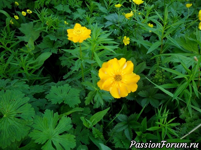 Среди лютиков расцветают купальницы или жарки,как их называют.