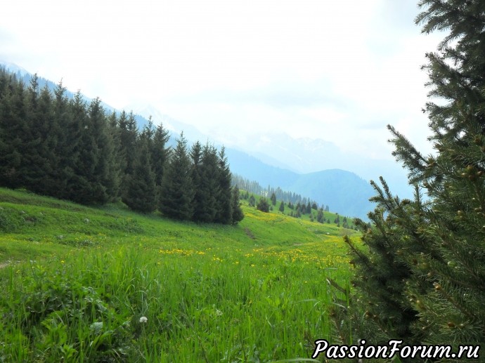 А вот и Кок-Жайляу! Шли мы сюда 2,5 часа и прошли около пяти километров.Сюда не поднимаются машины,здесь удивительно легко дышится и дух захватывает от красоты!