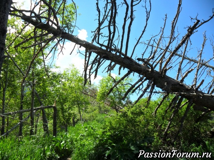 А вот на тропе-своеобразный шлагбаум,оставшийся после урагана.