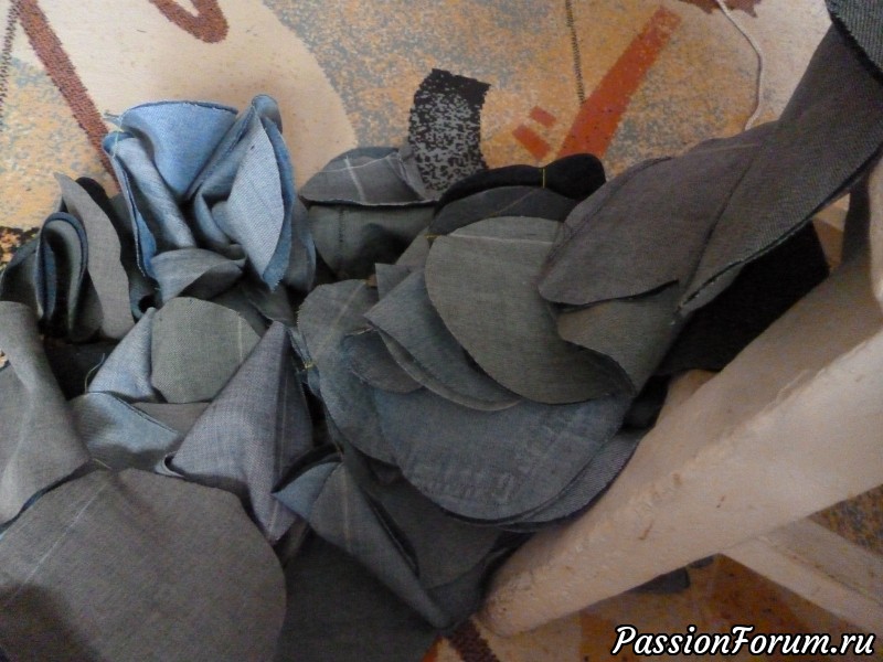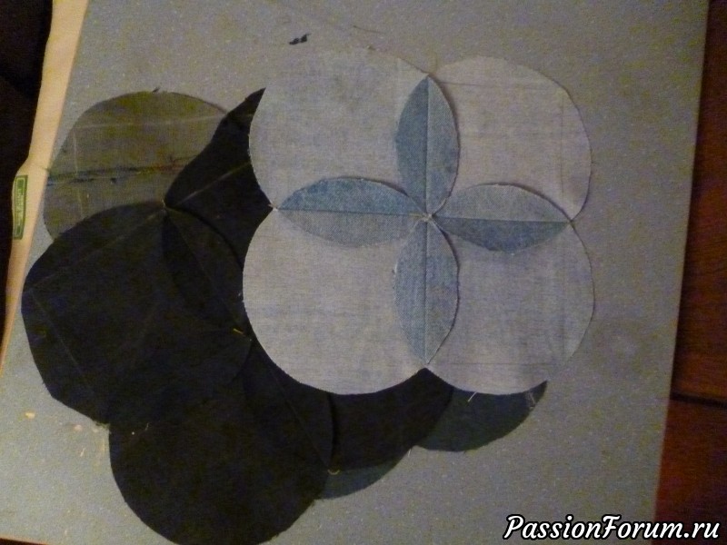 Наприносили мне штанов... кто пару пар, кто одни, кто три пары, а одна подруга, не стала мелочиться, принесла мне мешок штанов (13 штук). Но те штаны пока ушли в закрома. А их того, что насобиралось у меня, я нарезала кружочков на полтора пледа.