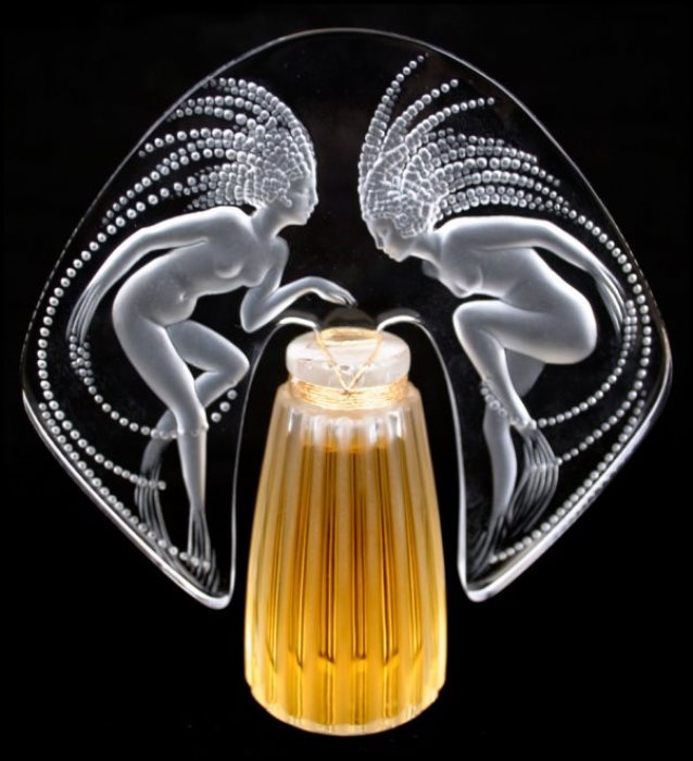 Одним из ведущих дизайнеров и производителей декоративных флаконов в стиле арт-деко был Рене Лалик (Rene Lalique) (1860-1945). В 1905 году в Париже он основал компанию по производству широкого ассортимента стеклянных изделий – от ваз и осветительных приборов до кукол.