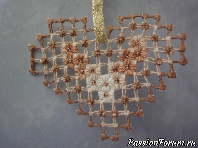 Вот еще одно сердечко. Бриды вышиты вторым способом.
