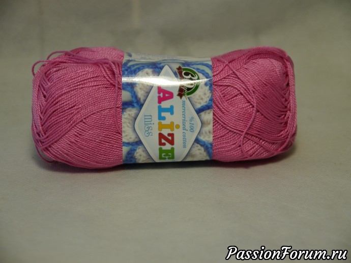 Пряжа ALIZE Miss, состав: мерсеризованный хлопок-100%, метраж 280м/50 гр, вес моточка 50 грамм, в упаковке 5 моточков, вес упаковки 250 грамм.
