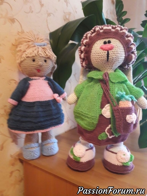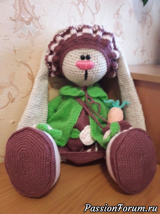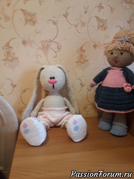 Чудесная работа Только цветочек на обуви зайки совпадает по цвету с цветом самой обуви и теряется как бы. Может цветочек поярче связать?