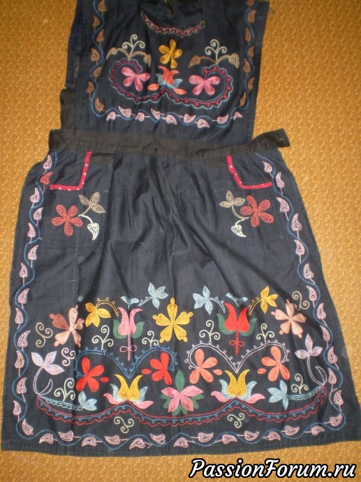 Достался мне настоящий(так уверяли родственники) нарядный татарский костюм для нашего музея. Вот только обещание я не выполню (клялась, что сфотографирую и покажу) пока я собиралась, костюм попросили на какое-то мероприятие, мне не сказали...Полностью его не фотографировала, а только детали вышивки на переднике и поясе (для уроков в 5 классе), вот, что есть, то и выкладываю