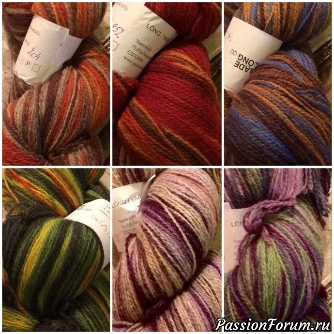 Пряжа для ручного вязания из чистой шерсти многосекционной окраски с очень длинными участками одного цвета.