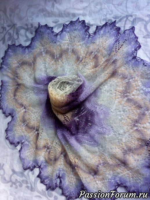 Добрый день, девочки! Весной связала шаль о которой давно мечтала. Спицы 3,5, вес 118 гр. Размер 1,9 на 97. Пряжа Кауни 8/1 Томас.