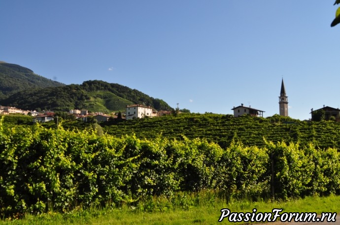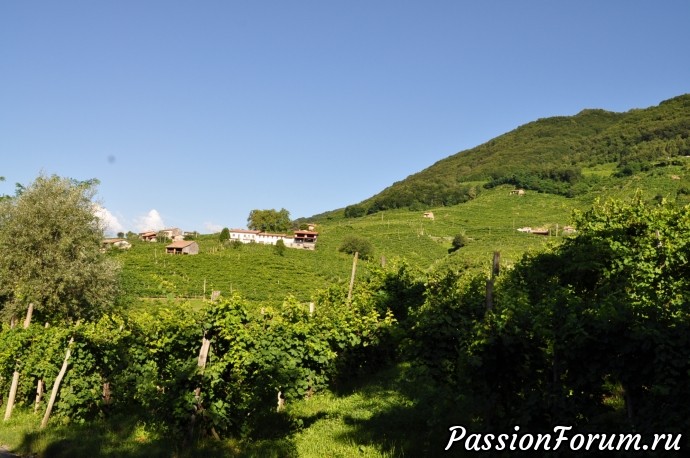 Знаменитые виноградники Венето, где производят иьтальянское Просекко и Рабозо.Все что ярко зеленого цвета -виноград. Некоторые холмы высоченные и там весь процесс уборки происходит в ручную, соответственно и цена вина увеличивается.
