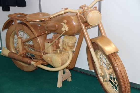 Ирина, тот что первый нет, он весь из дерева, а вот Веспа от итальянца на ходу. Потому как там движок и покрышки настоящие! Сама в шоке от умельцев!!! Вот ведь чудеса!