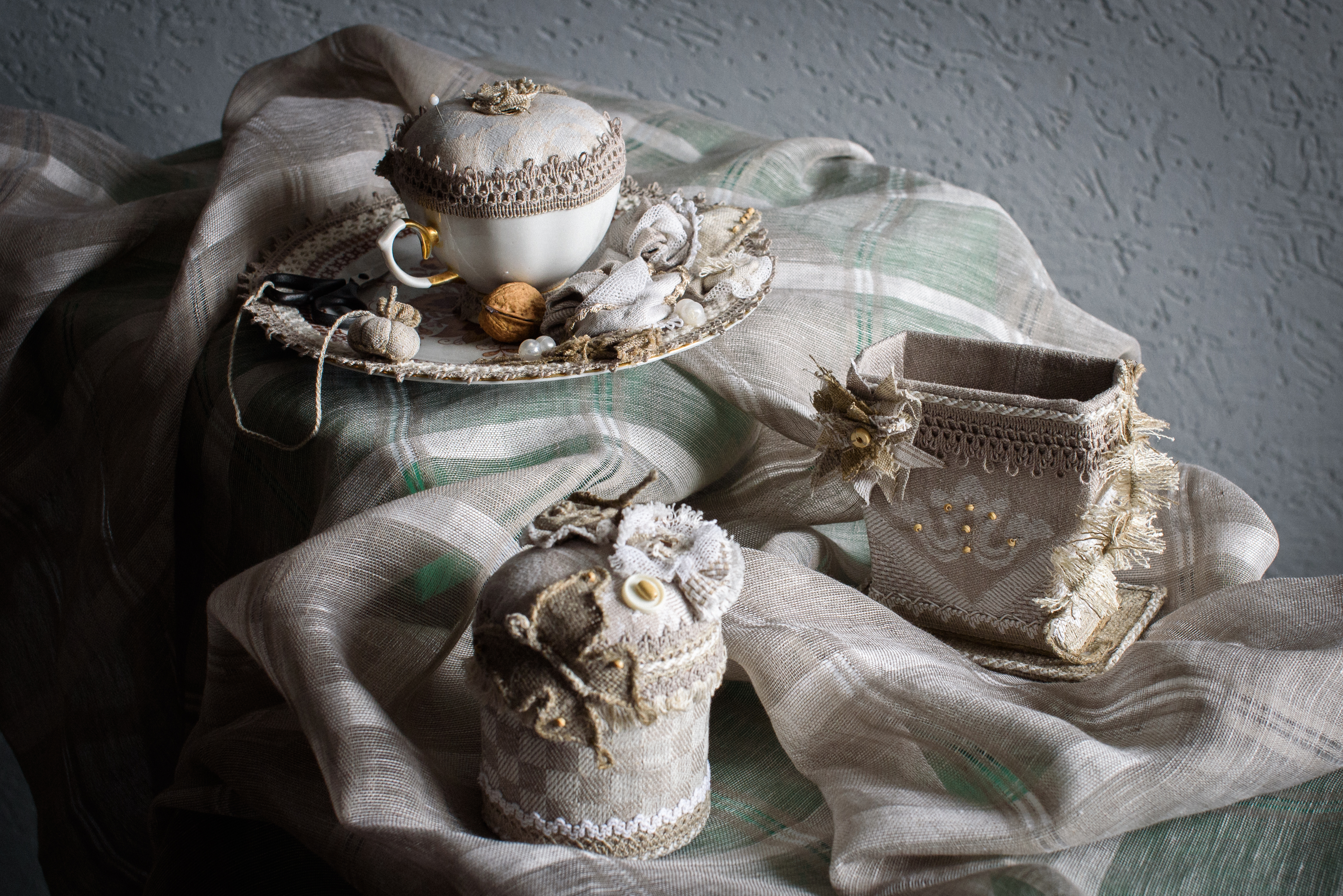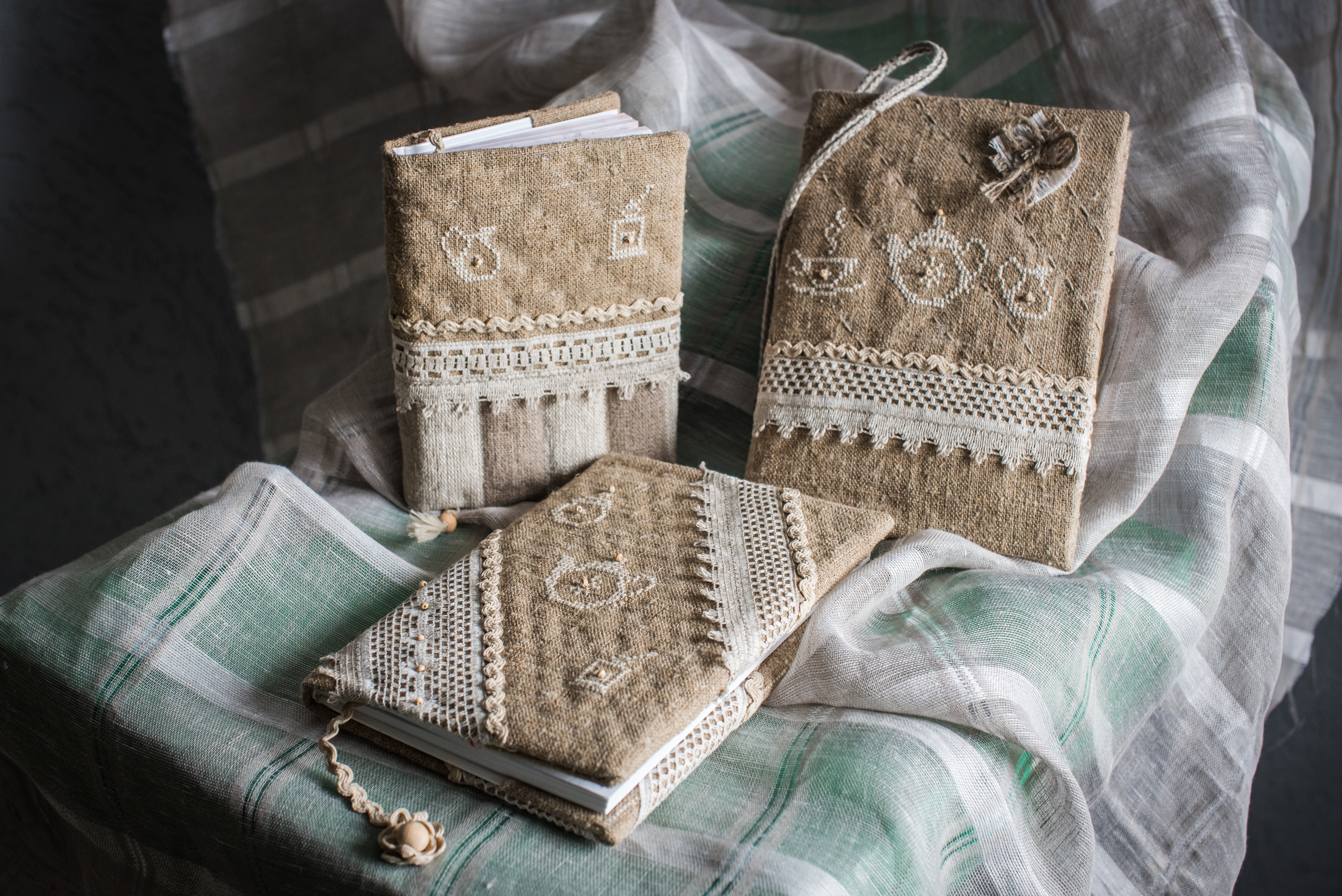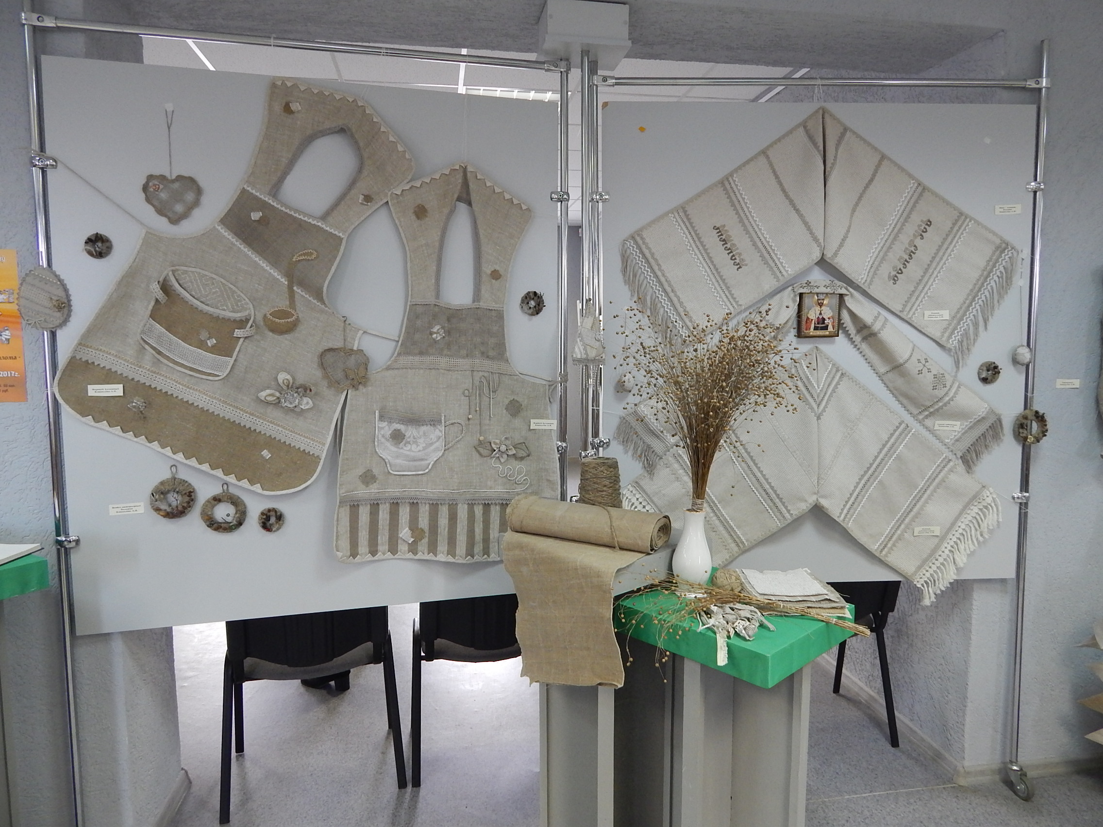 в изделиях использовала 30 сортов серого льна и 25 сортов кружева, шнура, тесьмы только белорусского производства из хлопка и льна, никакой синтетики