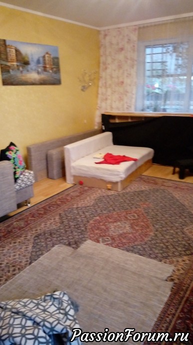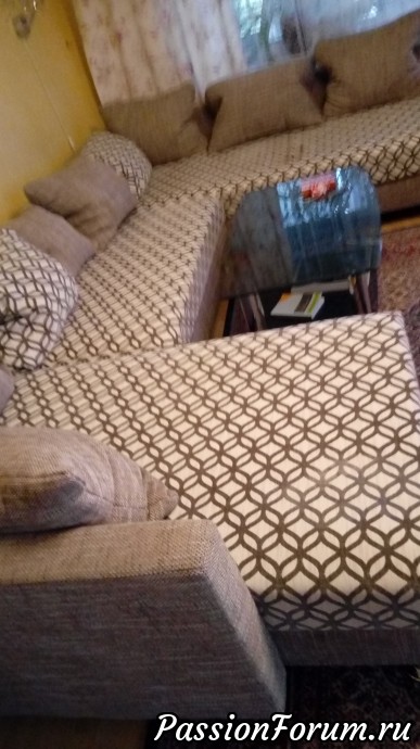 Добрый день, дорогие форумчанки! Очень хочется поделиться с вами радостью: наконец-то решилась моя проблема- мягкий уголок стал как новенький! А все началось с того, что на сиденьях образовались закатышки, убрать их никак не получалось. От этого постоянно портилось настроение...пока дочь не предложила поменять обивку. "Зрела" я несколько месяцев, пока не сходила на рынок тканей (бывает два раза в год) и, после длительных поисков и размышлений в 30-ти градусную жару, не приобрела ткань. Не откладывая в долгий ящик, в след. же пятницу принялись за работу. Первой мыслью, посетившей меня при начале работы, была- а как это все осилить? Опыт по обтяжке кухонного уголка уже был собран достаточный, но этот объем работ...сейчас я просто не нарадуюсь проделанной работе..