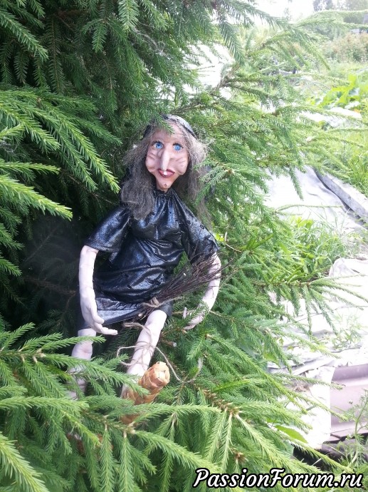 Принимайте в свои ряды. Вот и моя первая бабка ёжка . Она сделана в смешанной технике. Голова из глины, затвердевающей на воздухе. Тело по выкройке Болотовой Татьяны. Внутри тела проволочный каркас. Бабка ежка сидит . Волосы сделаны из пакли. Лапоточки из бересты. Наполнена синтепухом. Не судите строго, это всего вторая лепная игрушка. Первым был бульдог.
