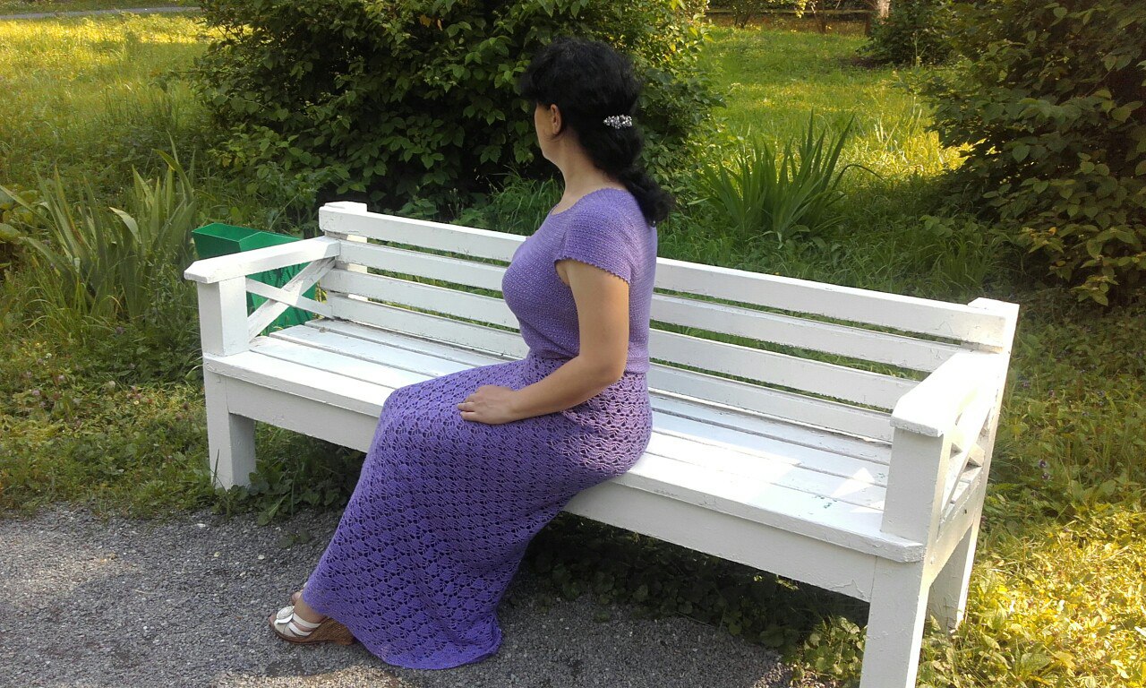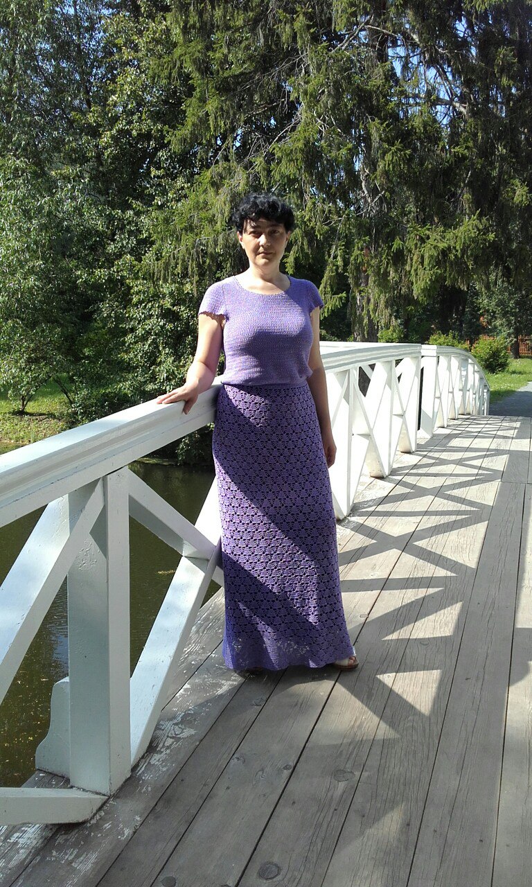 Всем, здравствуйте! Уже год наблюдаю за вашими новостями и работами, теперь сама решилась выставить на ваш суд последнюю свою работу. Платье связано крючком из ниток "Мальва" ПНК им. Кирова.