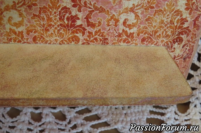 Затем затюкала накладку и полочку цветами по цвету совпадающими с картой, да сама основа и низ полочки-это декупажная карта.А после снова обвела орнамент и циферки контурами(в общем дурака работа любит))))