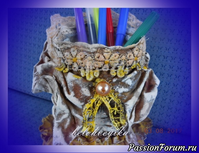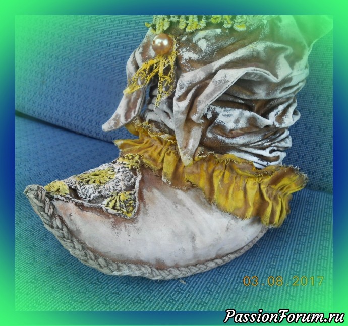 Результат вчерашнего вебинара Анастасии Голеневой "Башмак-подставка для карандашей" в технике грунтованный текстиль.Многие форумчанки уже делали такой башмак, вот мой вариант.Он такой чудесный получился.Сегодня все его трогают, разглядывают и не могут поверить, что он сотворён из белой бязи.Брат подумал, что я из глины слепила.