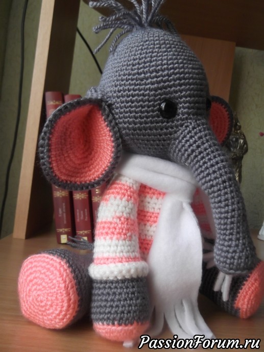 Встречайте он родился!!! Слоник ТИМОША. Пряжа пихорка акриловая. Ламы не оказалось в магазине нужного цвета, пришлось вязать из этой. Мне не очень понравилась, тонковата и мягковата, расхода меньше, но слоник получился всего 28 см