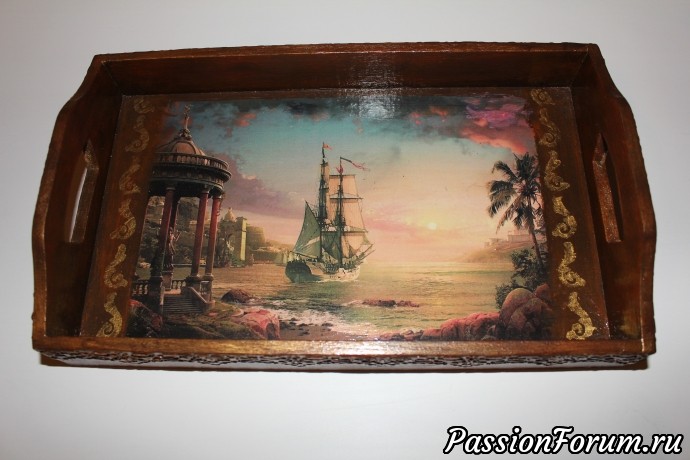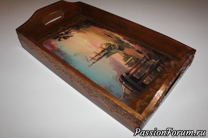 Эти подносы сделала еще в прошлом году, но показываю вам сейчас, так как они лежали в шкафу, куда я долго не заглядывала до вчерашнего дня, когда решила сделать ревизию и обнаружила их. На первом подносе рисовая бумага, на втором и третьем- распечатки. На втором подносе сделала одношаговый кракелюр внутри и снаружи. На двух других подносах боковины украсила трафаретным узором со шпаклевкой.