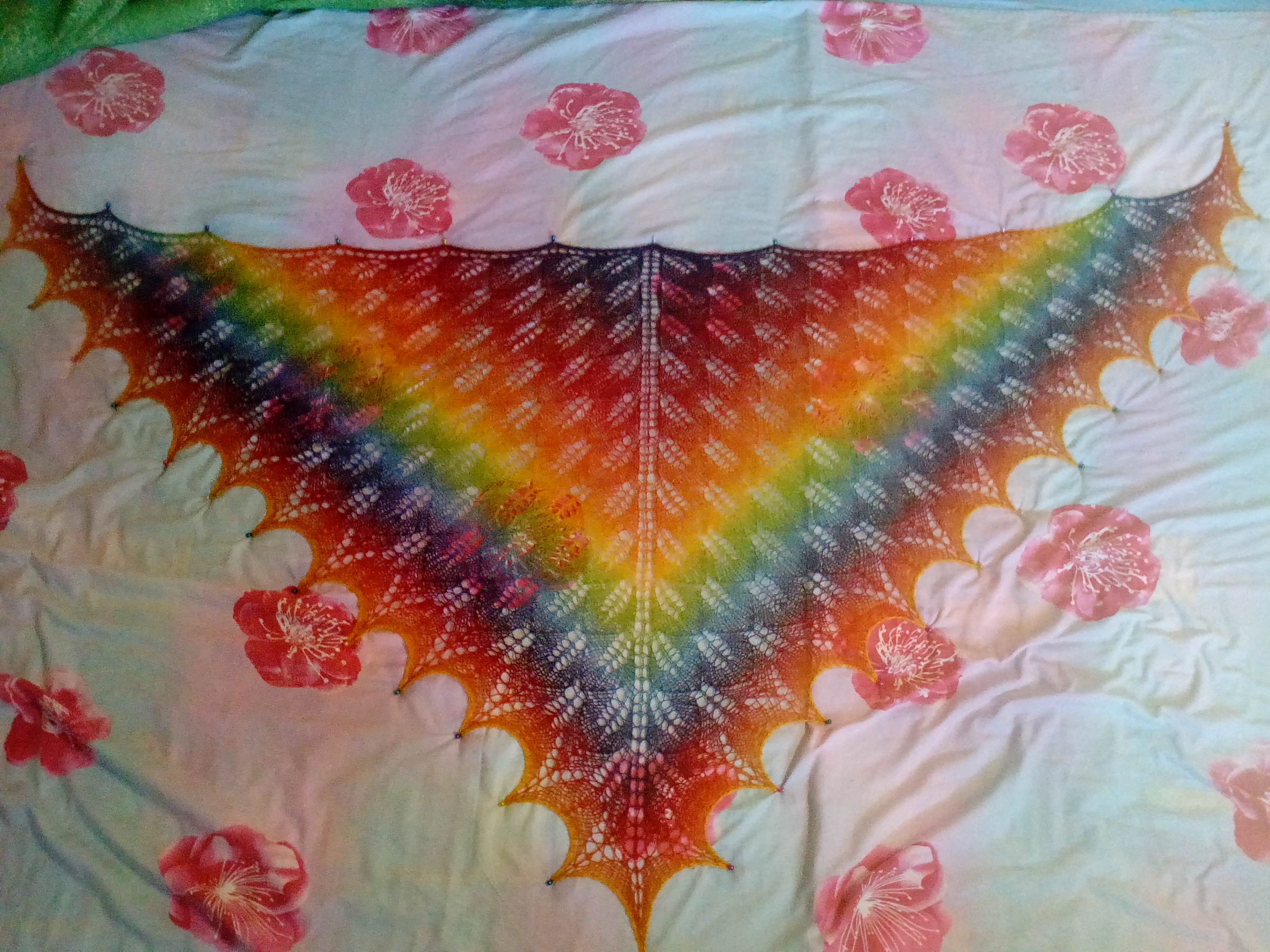 Добрался до кауни. Заказал конечно же радугу. Шаль выбрал что попроще. И вот что получилось. Надеюсь теще понравится.