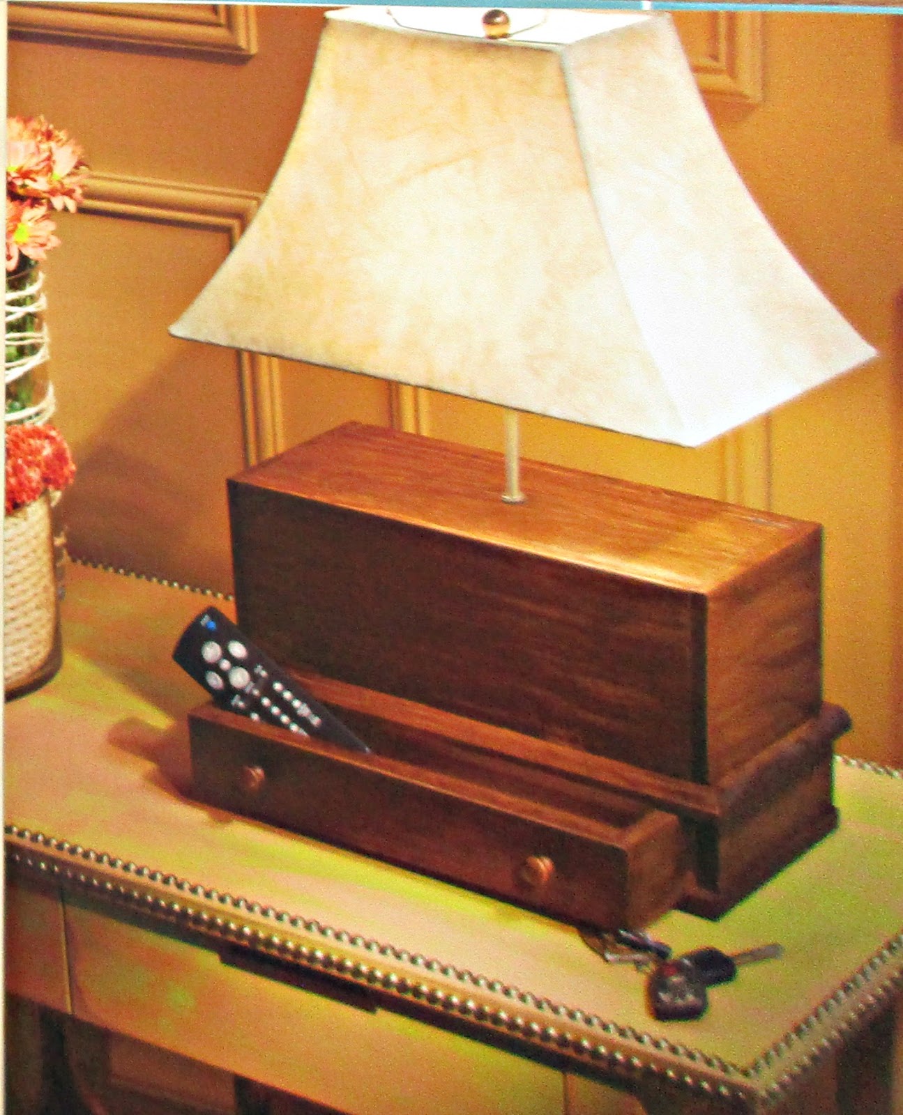 Идея-2. Основанием под лампу может стать маленький ящичек для мелочей. Тут совместится одно с другим.