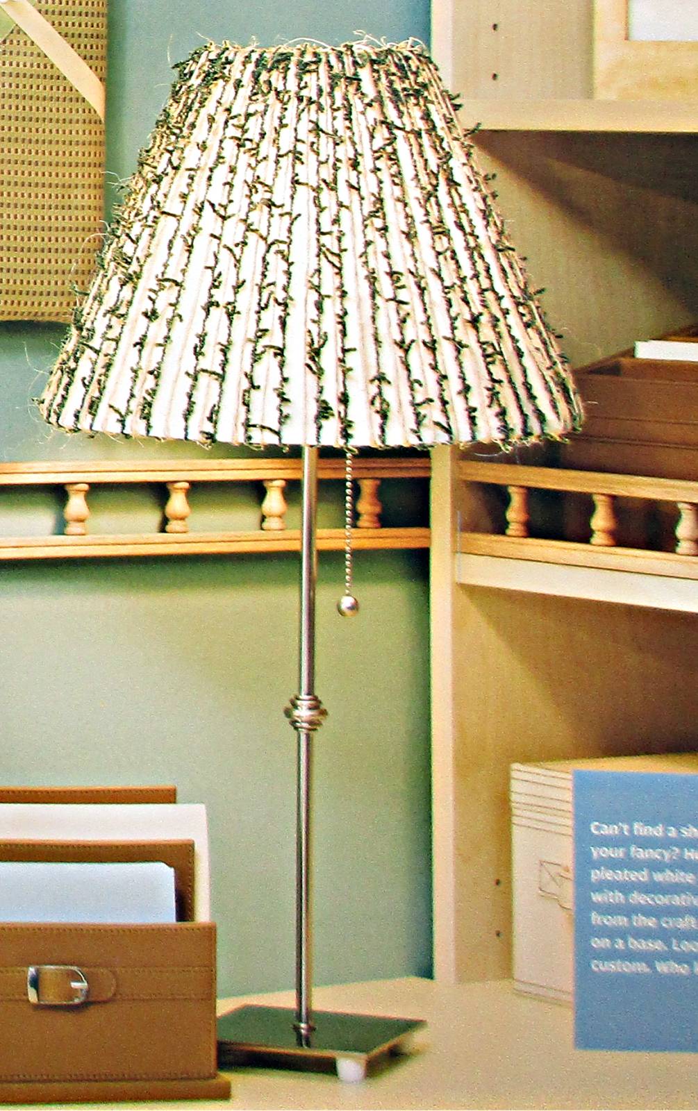 Слегка выгоревший и поднадоевший своим однообразием- абажур, можно подновить при помощи фасонной пряжи: