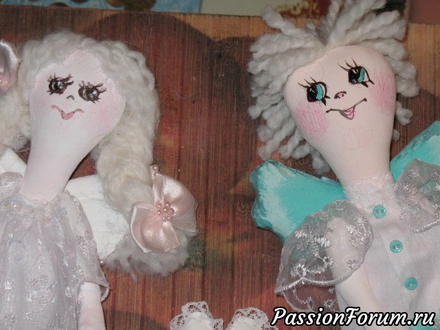 У ангелочка теперь есть дружок!)))) У меня "мятное" настроение!))) Розоватой девочке - в пару мятного мальчишку!))) А всё началось с пуговок, которые прислала мне наша форумчанка. Из дальней страны прилетели к нам крошечные пуговки мятного цвета! Под них купила акриловую краску, и попутно сотворила котика в мятных тонах!))) И вот дошли руки до мальчишки-ангелочка!))) По-моему они чудно смотрятся вместе!)