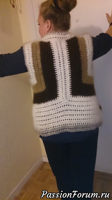 вот такой жилетки у меня получился. Сама пряла и сама вязала.