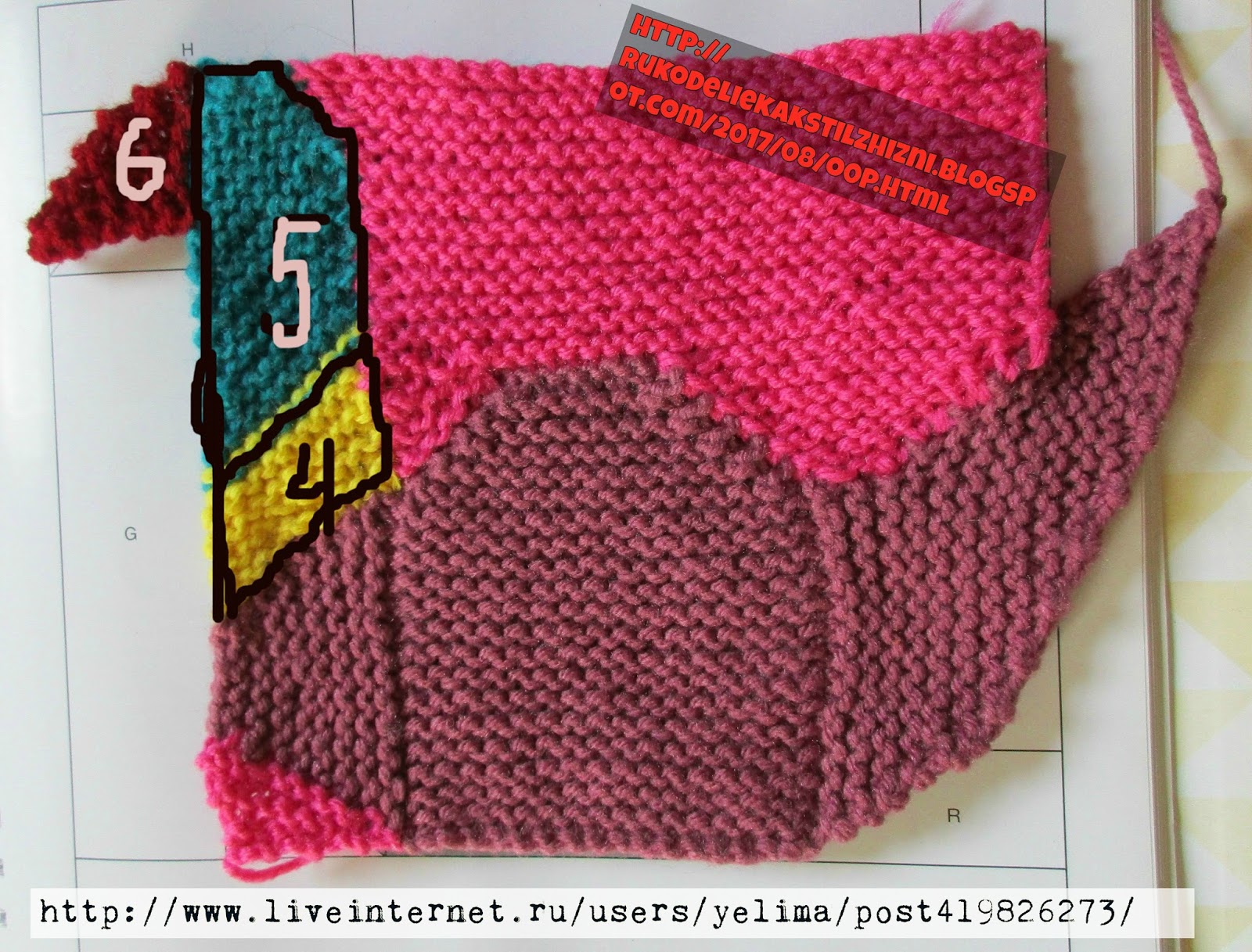 Уже не буду давать дотошное описание по количеству петель, а просто покажу в каком порядке я вязала и пристыковывала элементы друг к другу.