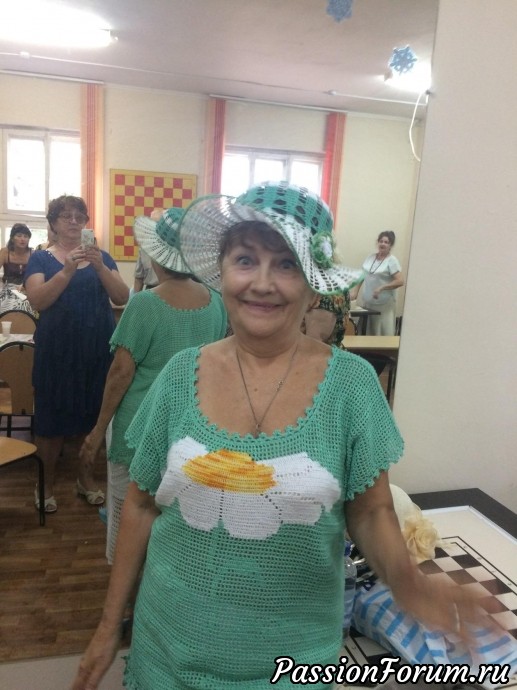 Радостная, сияющая женщина в этом блузоне с ромашкой и романтической шляпкой, вам просто здорово подходит!!! Связали очень хорошо!