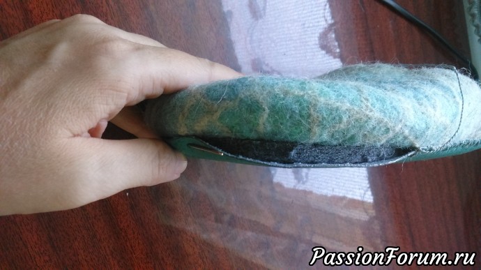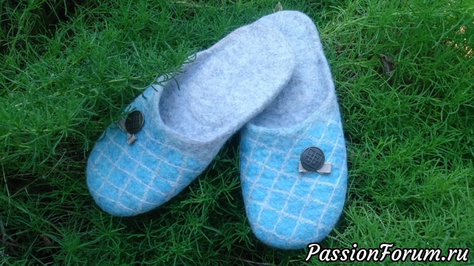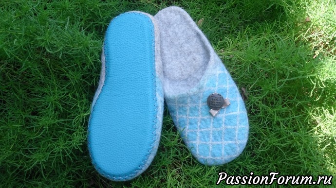 Кристина, маленький совет, пришивайте подошву на тапочек, не снимая его с колодки. Это в разы облегчает работу.