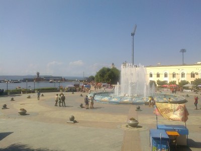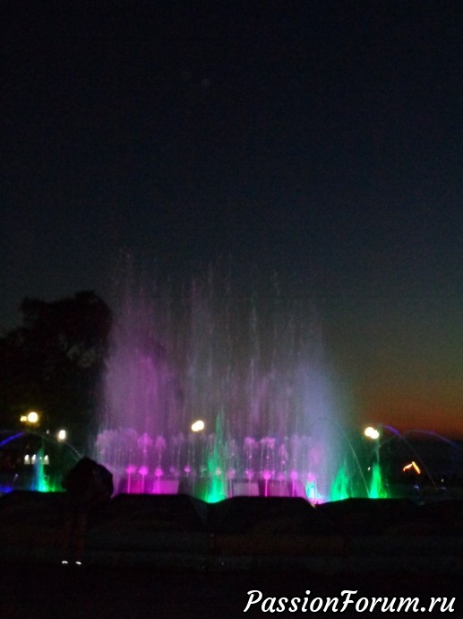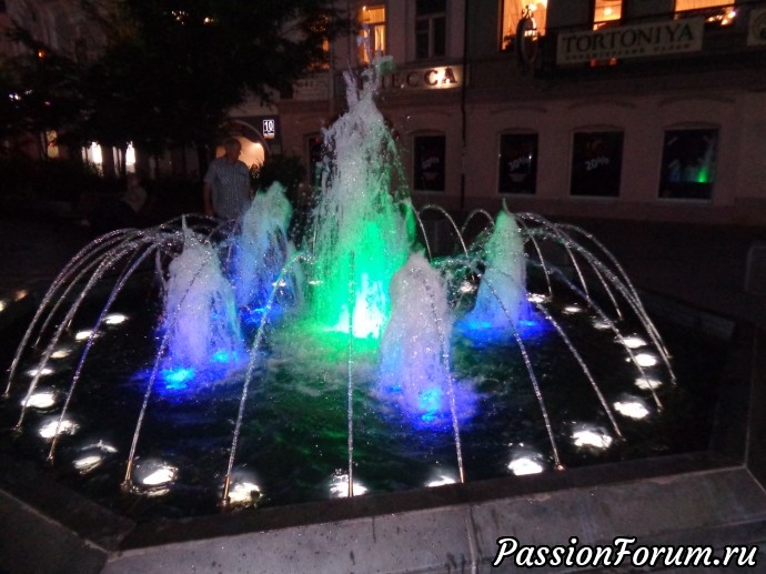 Урааааа!!!!!! Мы встретились наяву! Чудесно встречаться на просторах нашего форума сквозь границы и моря-океаны, но еще чудеснее встречи лицом к лицу! Мы не могли наговориться - до часу-двух ночи разговаривали обо всем на свете и по-настоящему сроднились. О нашей морской прогулке Светик уже написала, а я расскажу о цветных фонтанах. 18го я приехала во Владивосток и вечером мы с Наташей пошли на набережную и посмотрели фонтаны по дороге. Всего их четыре и последний самый большой. Все фонтаны с подсветкой и струи взлетают на разную высоту.