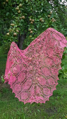Я не делаю не то, не это. Стираю как обычно и блокирую как всегда. После блокировки шаль получается, как накрахмаленная. Потом, спустя какое-то время становится «нормальной». Блокировку держит на «ура». Конечно, лен несколько жестковат по сравнению с другой пряжей, но от этого шали не перестают быть красивыми. Мне-нравятся.