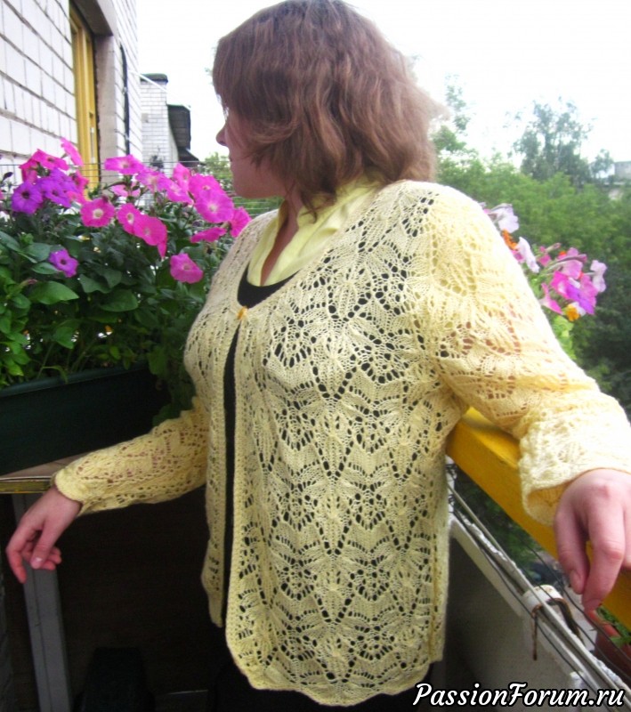 Лёгкий жакет - отличное дополнение к летнему гардеробу. Модель разработала таким образом что носить ее можно с чем угодно - на ваш выбор! Сарафан, платье различной длины, брюки и юбки. А светлый цвет жакета подойдёт к любой одежде.