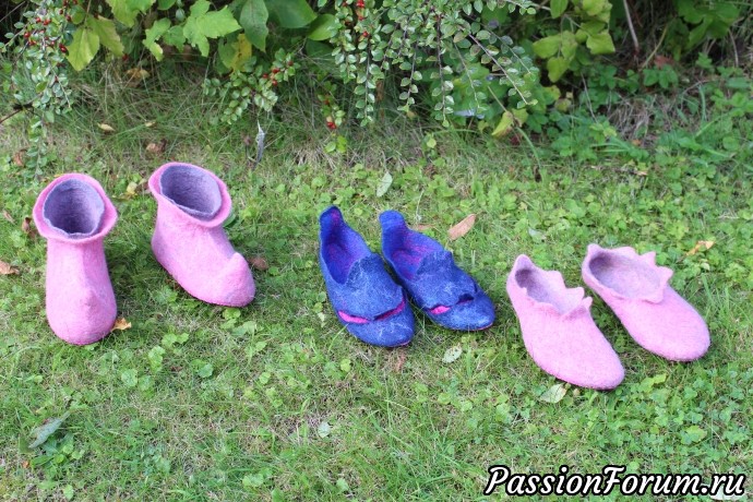Валяла тапочки с задником, без задника, мужские-женские-детские, с разным декором и количеством шерсти(прилагаю фото некоторых).