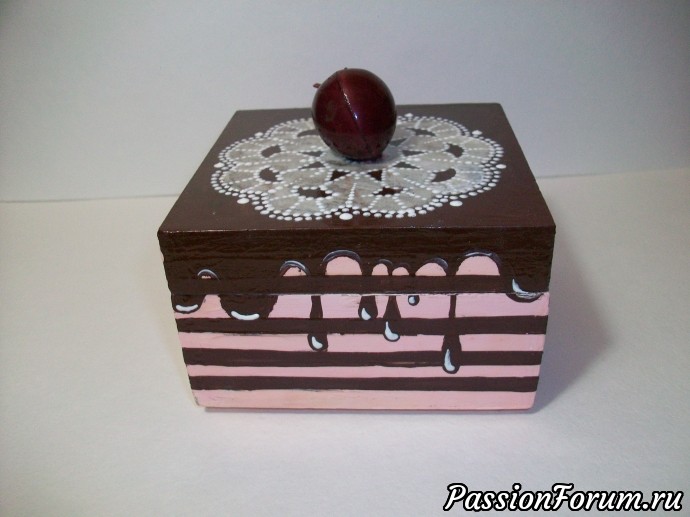 Доброго времени суток, дорогие рукодельницы! Хочу показать шкатулку «Тортик» (размер10*10*6).Акрил роспись, точечная роспись.