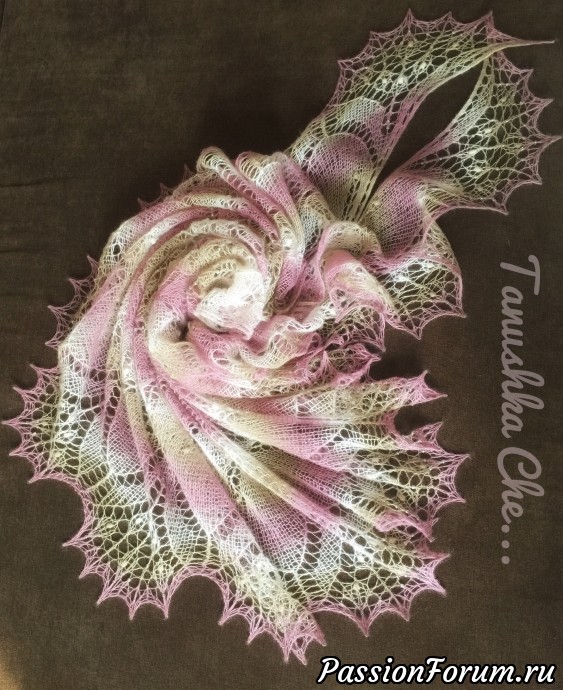 Чудесная шаль! Похожа на бело-розовый зефир! Такая нежная и воздушная!