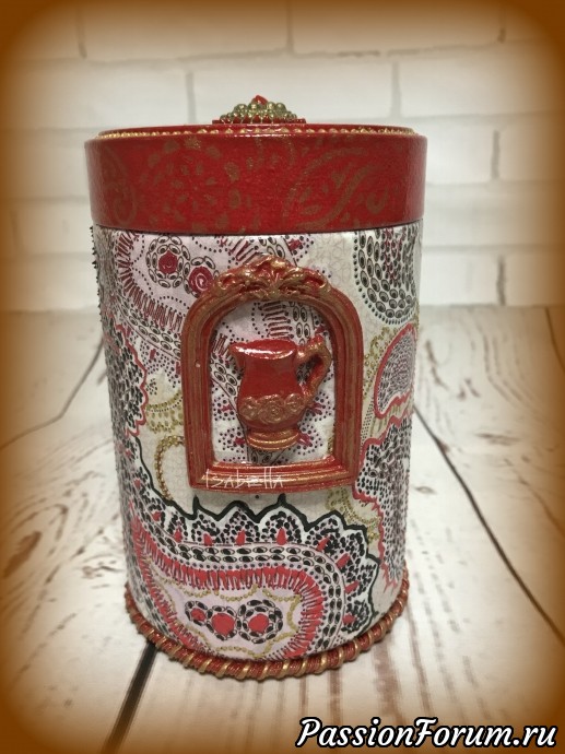 Но прежде, чем вы увидите её поближе, хочу показать предыдущую работу с этой же салфеткой, которую я думала выставить и отказалось от этой идеи, потому что получила силиконовые коврики с Али, которые заказала специально для этой работы. Итак, я хотела выставить баночку для кофе "Аромат Востока".
