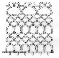 Другой декоративный элемент является кружева Azure . Она состоит из ряда колонн с двух нитей, которые находятся в верхней части, связанной узлом. Šije в два этапа - первого нормального завитка, который должен быть немного больше;последовал узел в верхней части сообщения. Если на первом этапе, мы исходим из слева направо, на втором этапе, если мы вернемся в противоположном направлении и узелок должен быть зеркально.