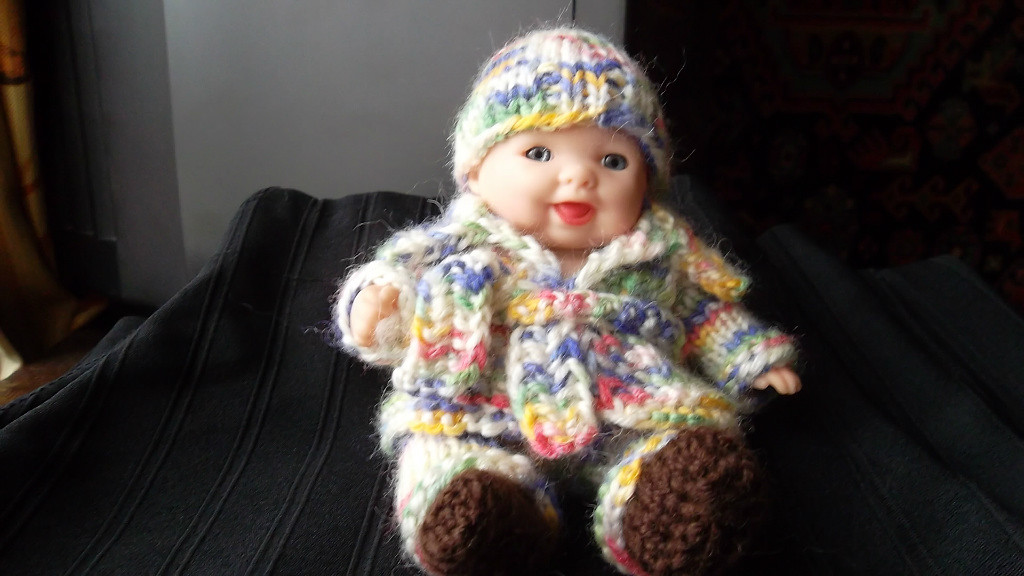 Здравствуйте ,всем.Решила показать свои работы,может не совсем примечательные ,но все -таки ..... . Как то была в гостях у дочери.И пока она была на работе я купила куклу и развлекалась ,как могла.